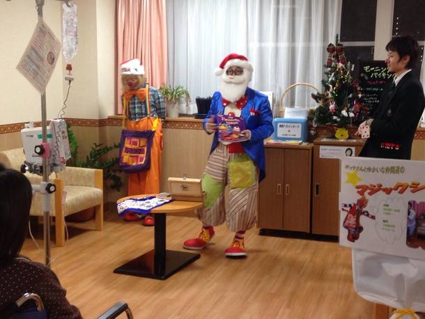 そして、皆さんもクラウンの訪問を心待ちにしてくださっています。私達が非日常を持ち込んで、不安とか苦しみとか淋しさなどといったものを一時でも忘れられたり、また心が元気になるからだと思います。