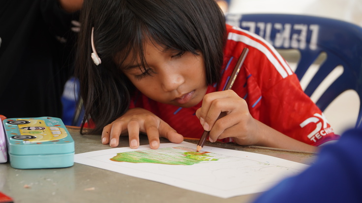 一方、子どもたちは一心に絵を描いています。