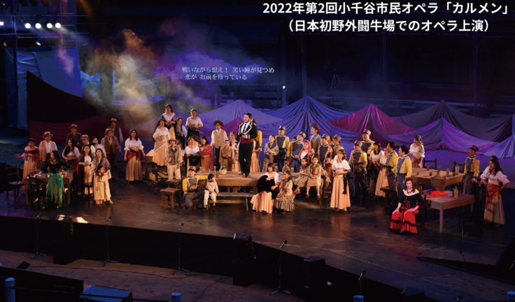 (2022年野外闘牛場(小千谷市)で開催された第2回小千谷市民オペラ「カルメン」記事:外務省ホームページ内グローカル外交ネット2022年8月19日掲載)