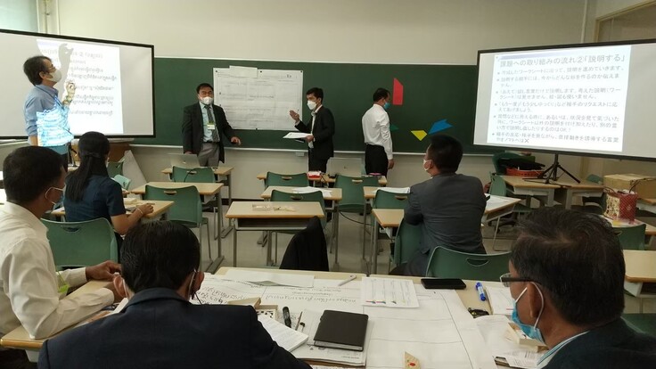 岡本先生とPTTCの教官の方々は、子どもたちが筋道立てた話し合いができるようになるために、教員はどうサポートすればよいのか考え合いました。