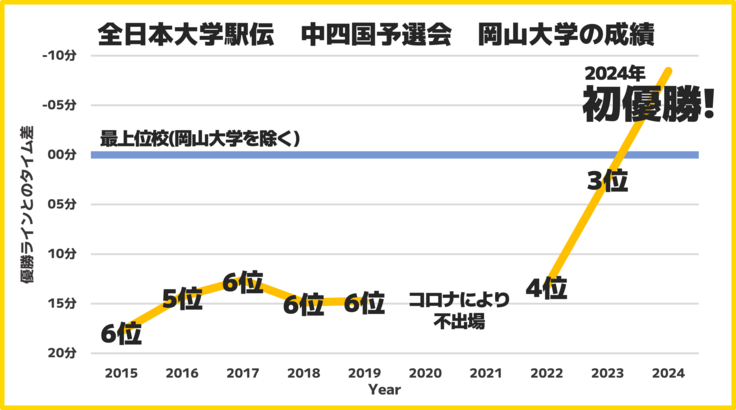 この瞬間、岡山大学が大学史上初めて、チームとして全日本大学駅伝に出場する権利を手にしました。