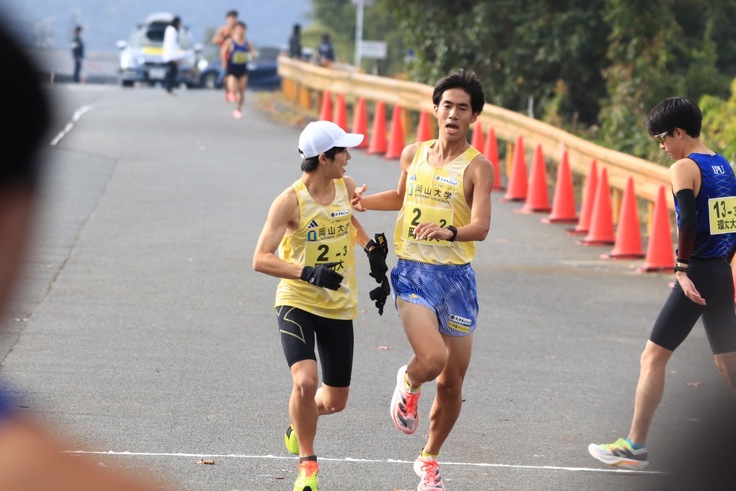 1区岩﨑(5)→2区木戸(2)の襷リレー