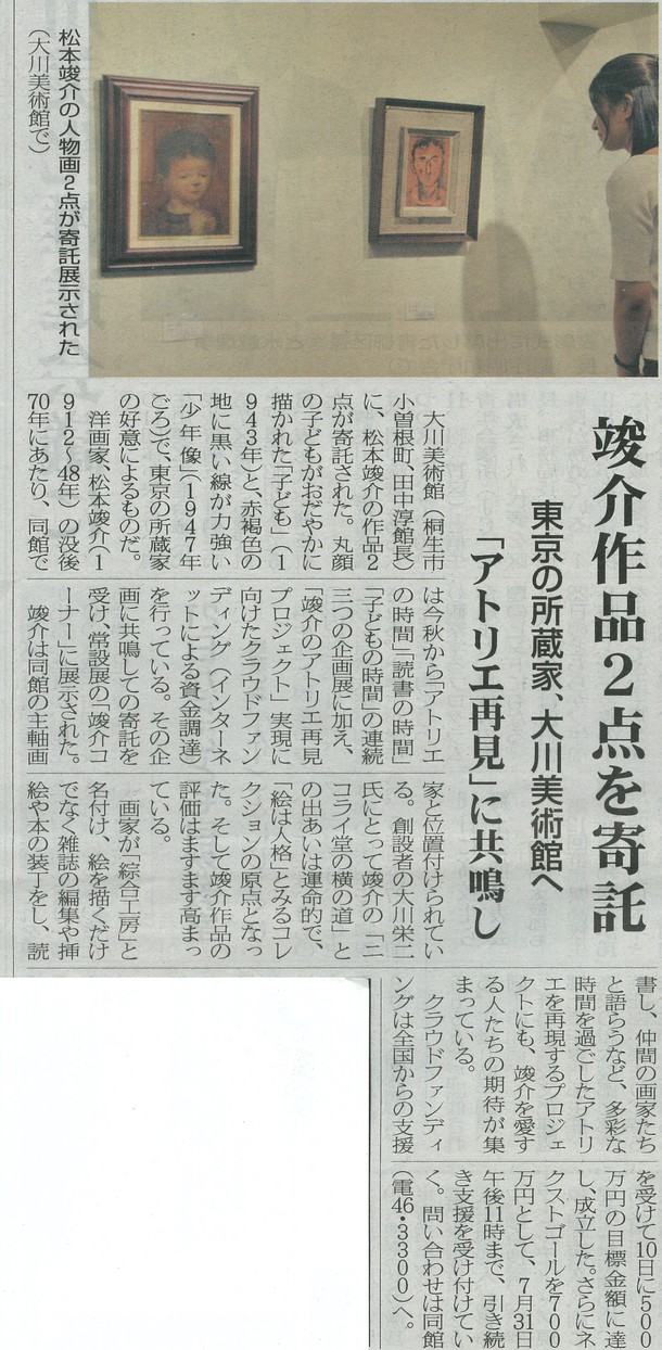 7月10日(火)の桐生タイムスにて、新規寄託作品の紹介とともに500万円達成の記事が掲載されました。達成できましたのも、ひとえにご支援いただきました皆様のおかげです。ありがとうございます。