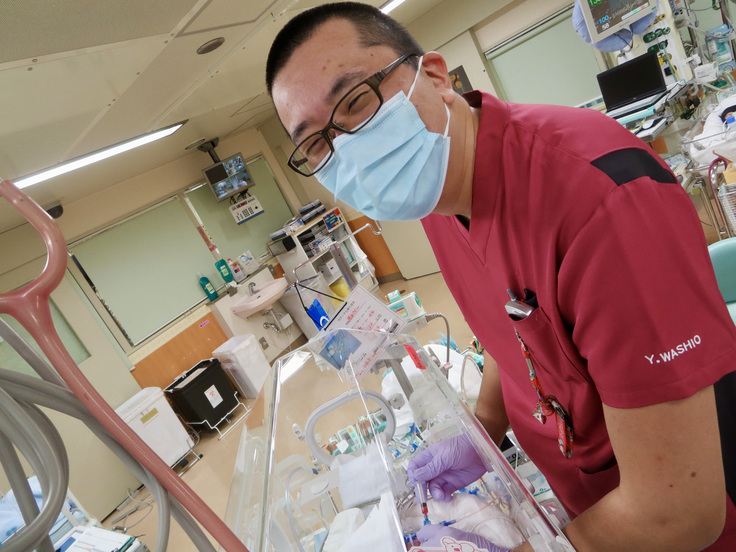 写真は新生児集中治療室(NICU)での診療風景です。