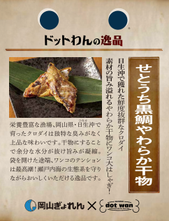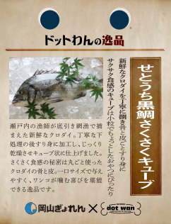 クロダイの仕入れ先、岡山県漁連様のロゴマークを入れさせていただきました。