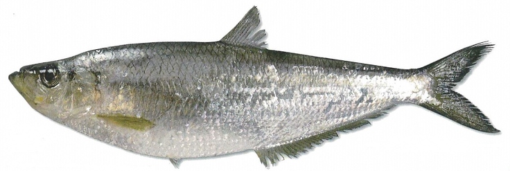 平たくシャンパンゴールドに輝く大型(成魚は約50cm)のニシン科の魚です。