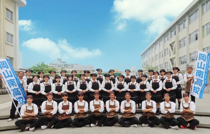 岡山県立岡山南高等学校 商業クラブの皆さんとは、10年前の商品開発からのご縁です。当時、開発した商品は地域で愛される人気商品となり、今でも毎年製造させていただいています。