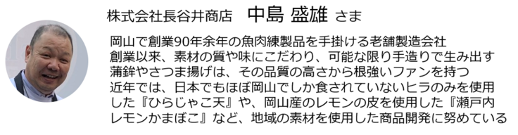 下処理が難しい「ヒラ」を子どもたちの給食に簡単に取り入れられるように美味しく加工してくださる「株式会社サンキ商会」の自慢の商品の中から、岡山や瀬戸内にちなんだ商品を、僕たちがセレクトしました!