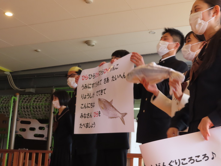 翌日、無償提供した「ヒラのうま煮」は、ご飯に混ぜ混ぜしておにぎりとなり、子どもたちのお腹の中へ。おかわり続出で大好評だったようです!!「ひらのうた」も、年長さんが覚えてくれ、低年齢クラスのみんなに披露したとのこと。