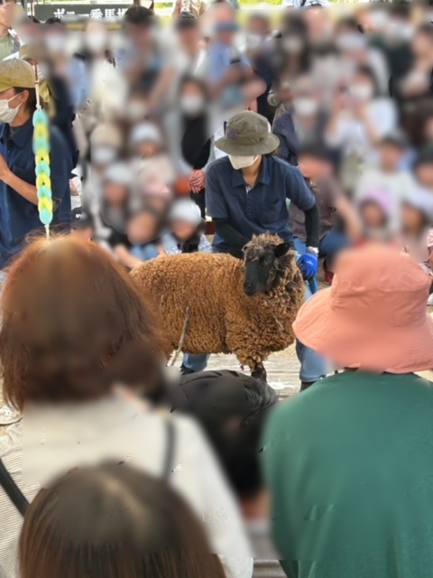 (おかやまフォレストパークドイツの森 羊の毛刈りショーの様子、黒い羊はコリデール種です。)