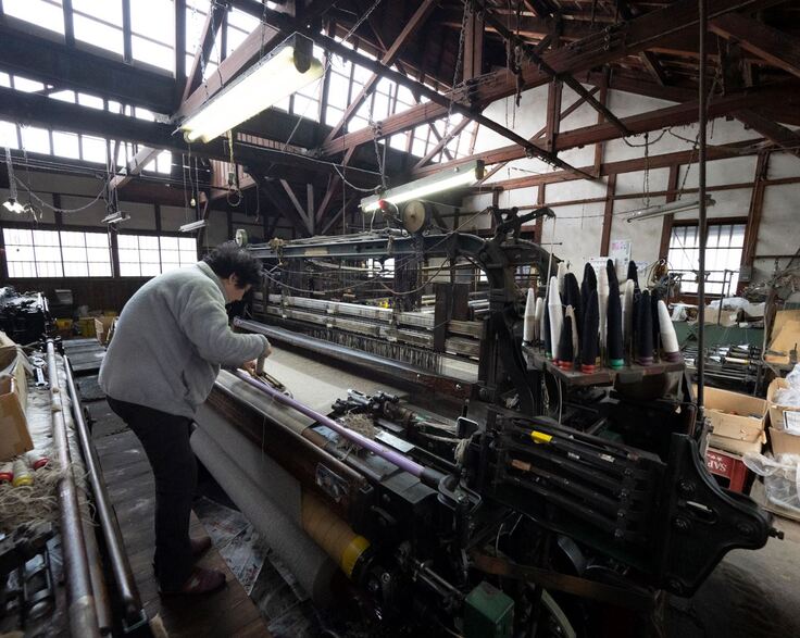 ションヘル式織機は、現在主流の最新織機と比較すると1/5程度の非常に遅いスピードで生地を丁寧に織り上げるそうです。愛知県では、いまだにションヘル式自動織機を使用しているこだわりの機屋さんが存在していています。ションヘル式自動織機は50年以上前に製造されたもので、現在では生産も中止され稼動台数も少ない大変貴重な存在だそうです。