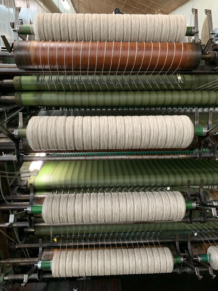 コート生地の製織に向けて第一歩を踏み出しました。この糸を無駄にしたくない、きっと良いコート生地になるという確信を持って、製織していただける工場を探しました。