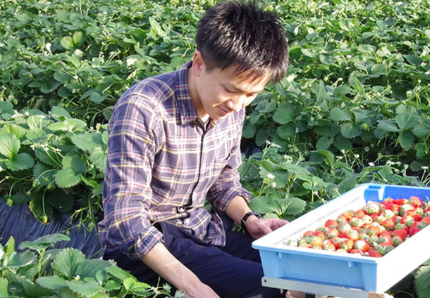 初めまして、澳原いちご農園の澳原大介です。栃木県矢板市で生まれ育ち、名古屋で働いていたところ、いちご栽培をしていた父が病気に。帰省したことをきっかけに就農をし、今年で5年目を迎えます。