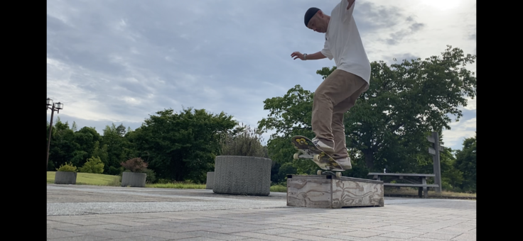 現在40歳を過ぎ、仕事をしながら趣味のスケートボードに熱中できるのも暮らしやすい総社市のおかげというのも一因だと思います。学生時代にスケートボードを始め、一時期離れていましたが数年前に復帰しました。学生時代は、仲間と集まるためのツールとしてのスケボーでしたが復帰してからは学生時代よりも真剣にスケートボードに取り組んでいます。