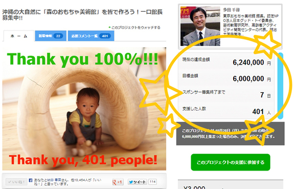 現在、401名の方から624万円集まっています。