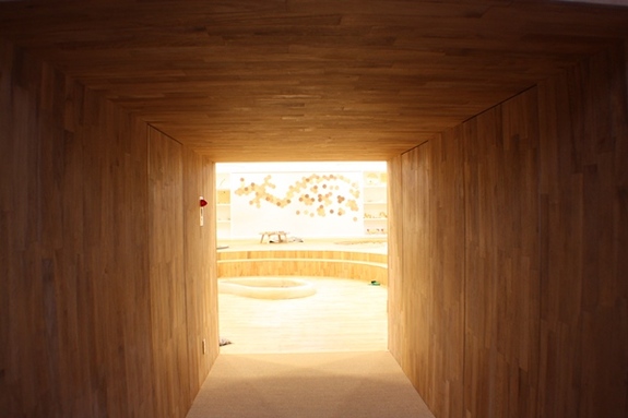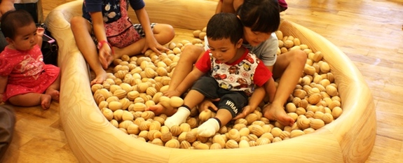 ヤンバルクイナの玉子型に作ったプールは、五感で木の良さを楽しむことができます。