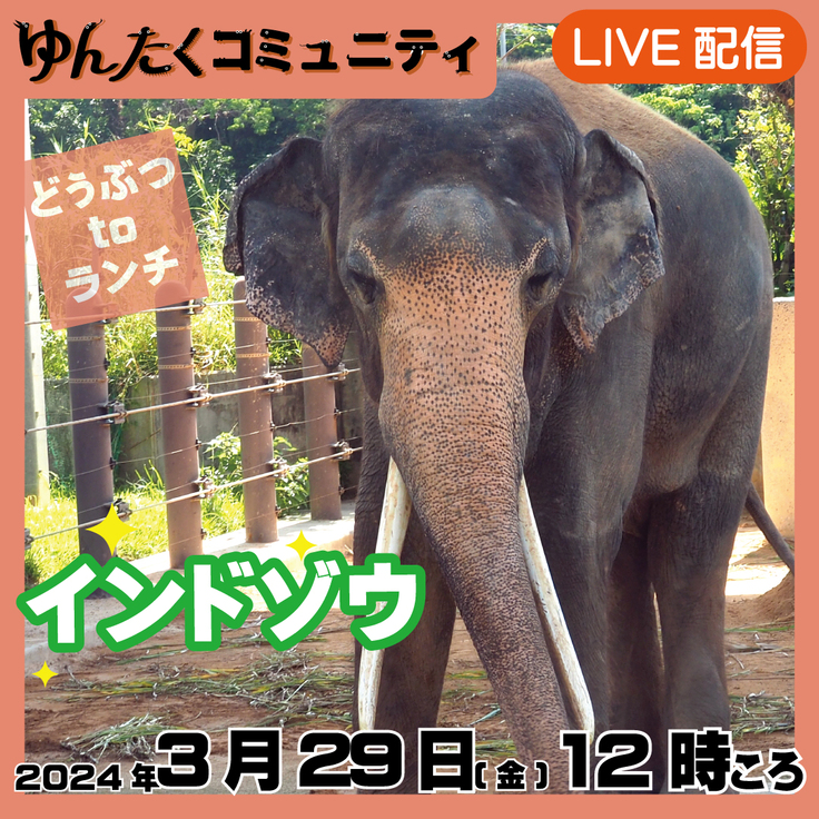 ゆんたくコミュニティ限定ライブ配信どうぶつtoランチ【インドゾウ】
