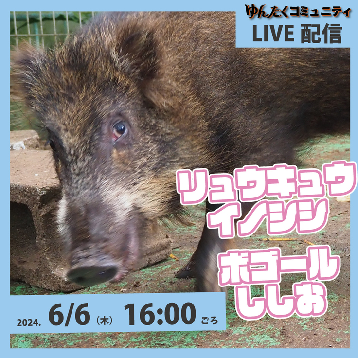 今週のライブ配信は、リュウキュウイノシシのボゴールししが登場します!