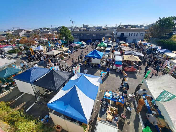 すばらしい秋晴れのもと、市内の事業者や団体、さらに県外の交流市町が出店し、買い物やステージイベントを楽しむ人でにぎわいました。