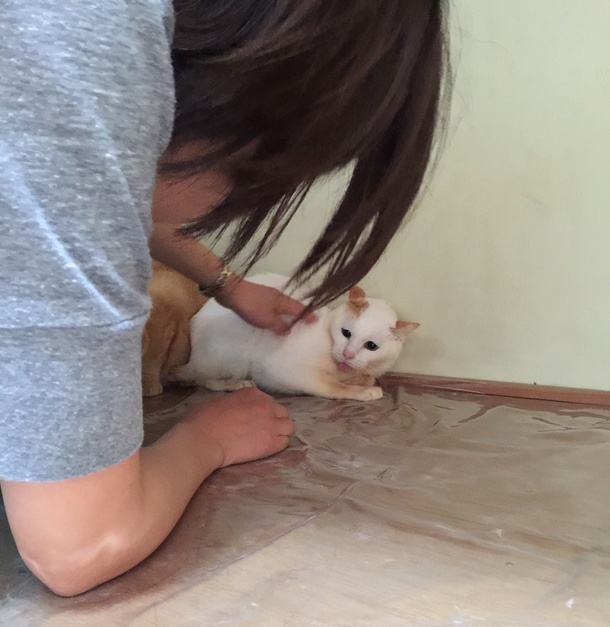 まだまだほかの7にゃんずに比べると怖がります。
