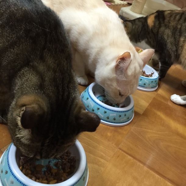 猫たちもちょうど近くにいたので、8匹のにゃんずたちに生活費をみんなが支援してくれたことを報告いたしました。
