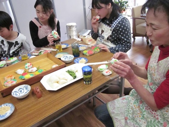 終わった後は、みんなで食事会。自分の作った作りたてのおこし型はおいしいものです。
