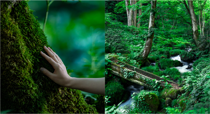 清らかな水の流れ、苔むした岩、森を渡る風——