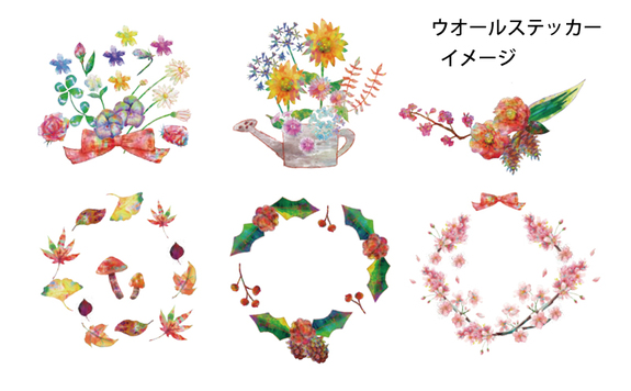 2015年にアポロ製作所から販売予定のウォールステッカー1枚をプレゼント。私がデザインしたWALL GARDENINGのステッカー、春夏秋冬、衣食住の7パターンから1枚。冬はA3サイズ。それ以外はA4サイズです。どれがくるかはお楽しみに。