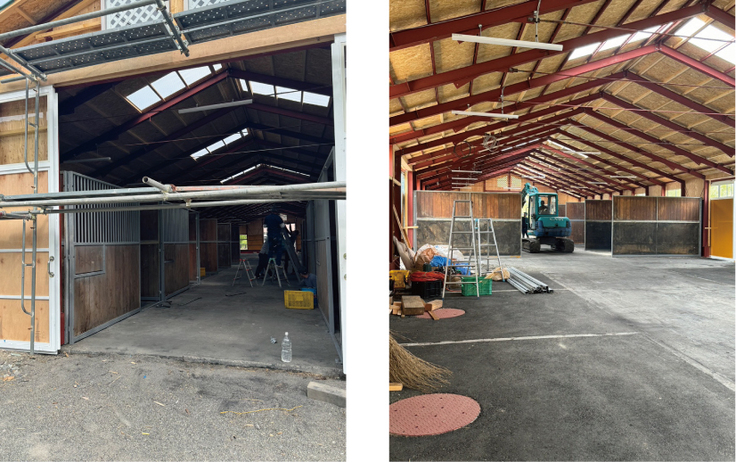 皆様のご支援のおかげで、予定より早く新厩舎の工事も進み、