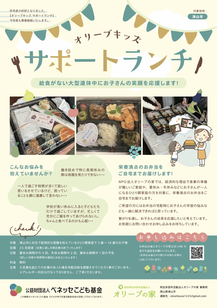 昨年度大好評となりました 【オリーブキッズ サポートランチ】 今年度も事業継続いたします☺️