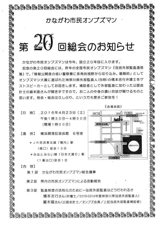 <かながわ市民オンブズマン 第20回総会開催のご案内>