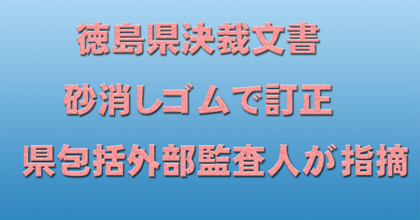 徳島県決裁文書 砂消しゴムで訂正 県包括外部監査人が指摘