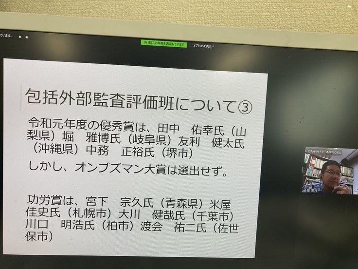 全国市民オンライン大会で包括外部監査の表彰と説明