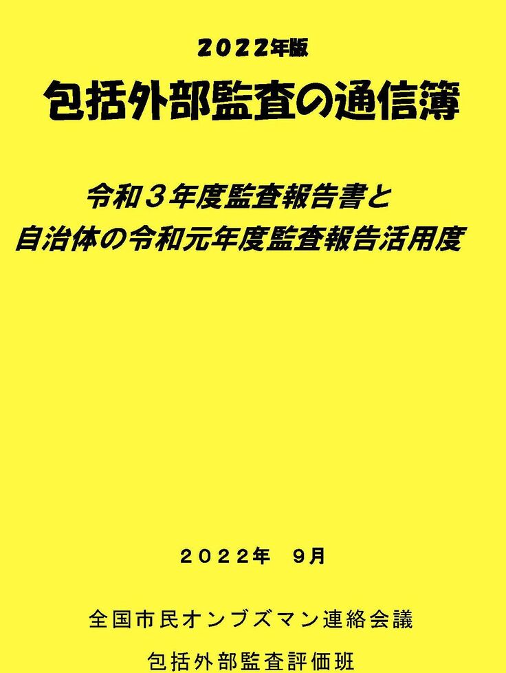 全国市民オンブズマン連絡会議は「2022年版包括外部監査の通信簿」を作成する。支援金は冊子印刷代にあてる