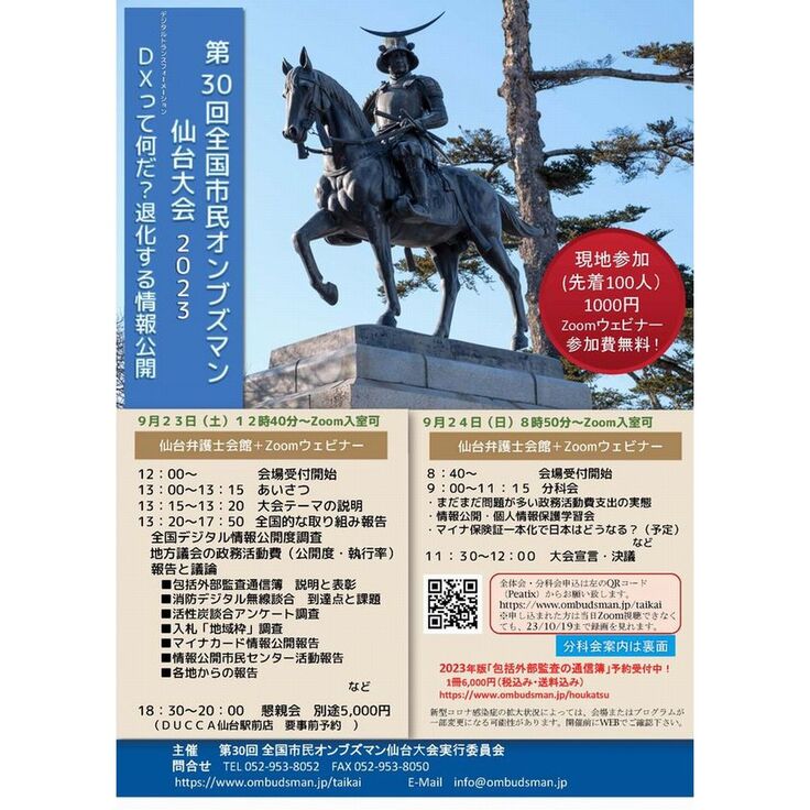 23/9/23(土)24(日)第30回全国市民オンブズマン仙台大会2023 お申込みを