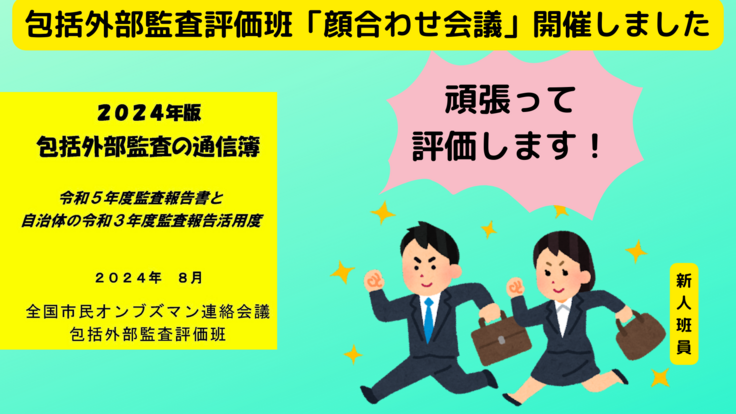 全国市民オンブズマン連絡会議 包括外部監査評価班は、24/3/8(金)に「顔合わせ会議」を開催しました。