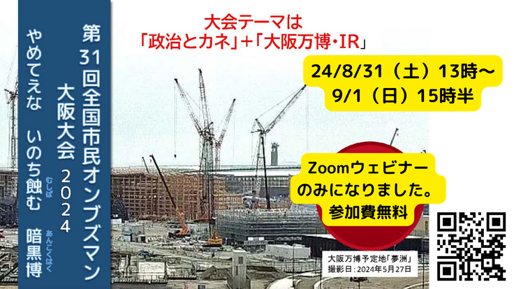 【重要】24/8/31(土)9/1(日)全国オンブズ大阪大会はZoomウェビナーのみ開催に変更