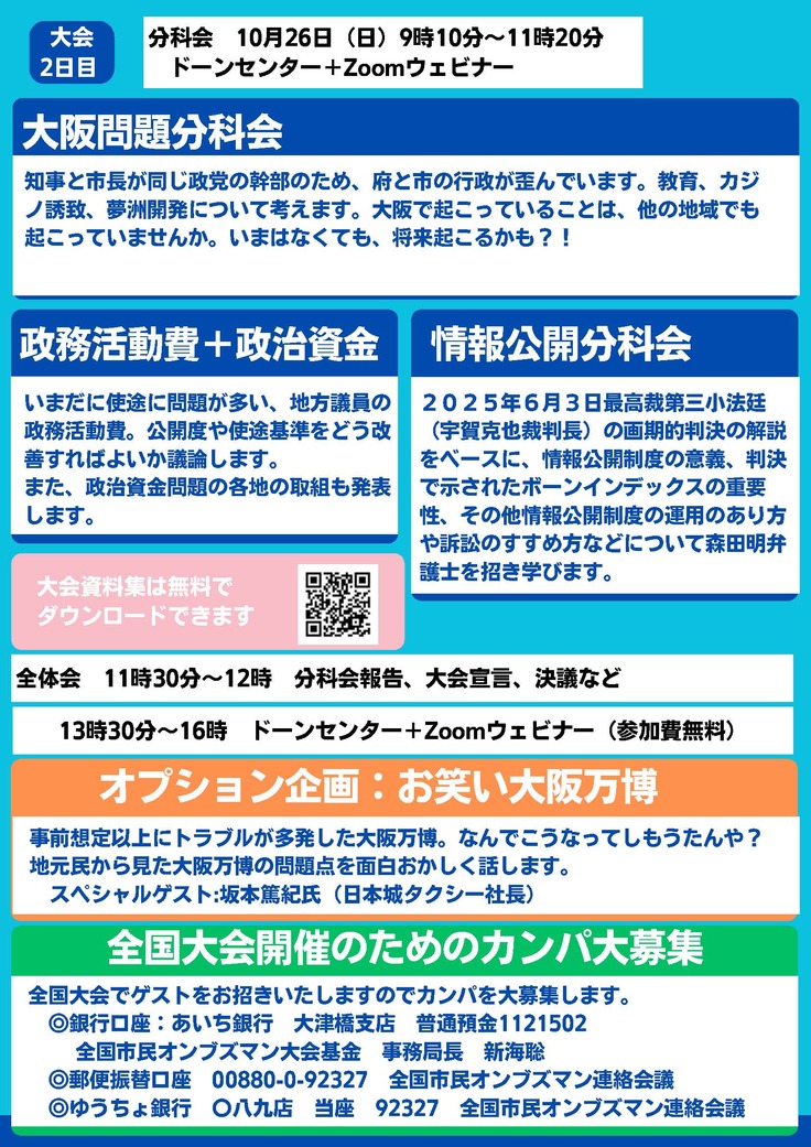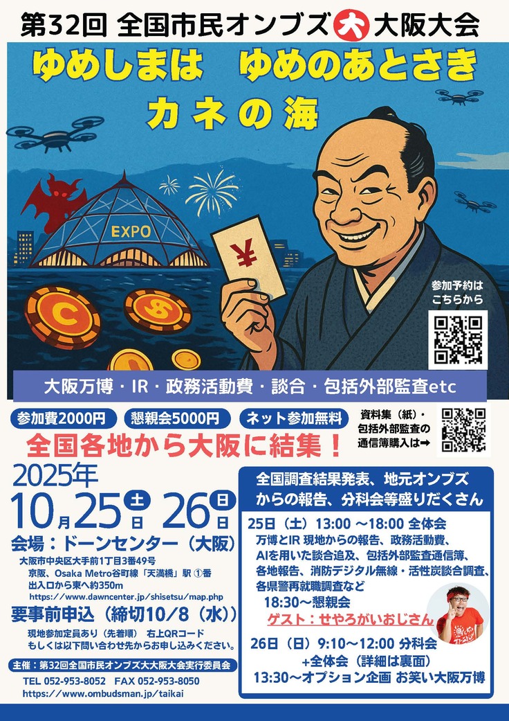 【申込開始】第32回全国市民オンブズ 大大阪大会 2025年10月25日(土)・26日(日)@ドーン