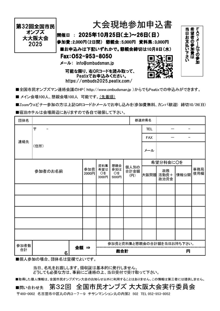 ・FAX(当日払い):案内チラシPDF https://www.ombudsman.jp/taikai/250812.pdf 参照