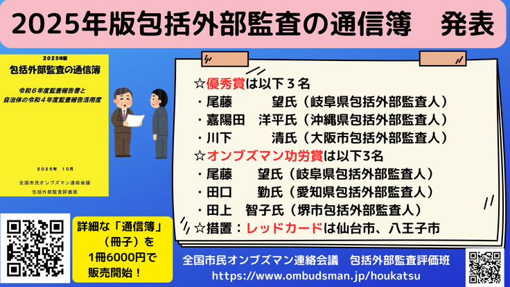 2025年版包括外部監査の通信簿 優秀賞に岐阜県・沖縄県・大阪市外部監査人