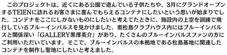 ※このプロジェクトは松島基地に確認済みです。