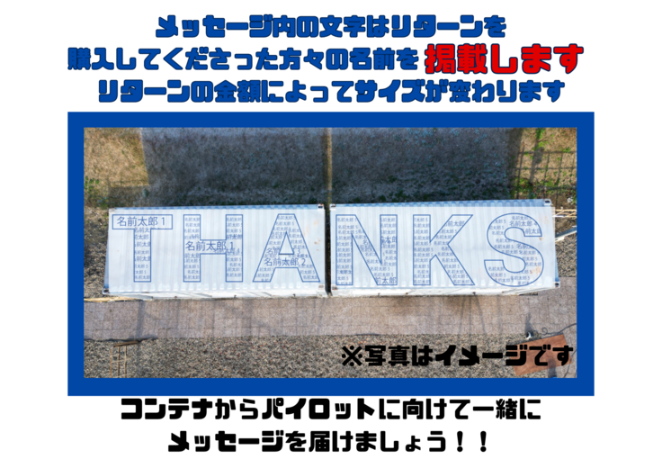 ●コンテナ天井部分の応援メッセージにご支援者としてお名前掲載