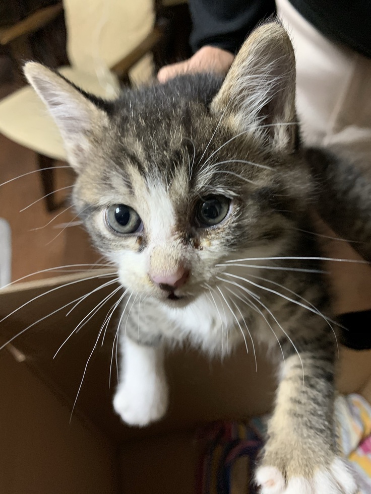 おみそが我が家に来た経緯は、娘が学校に登校中、車に轢かれそうになっていた子猫を助けたのが始まりでした。