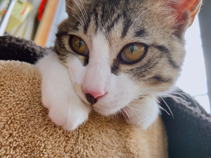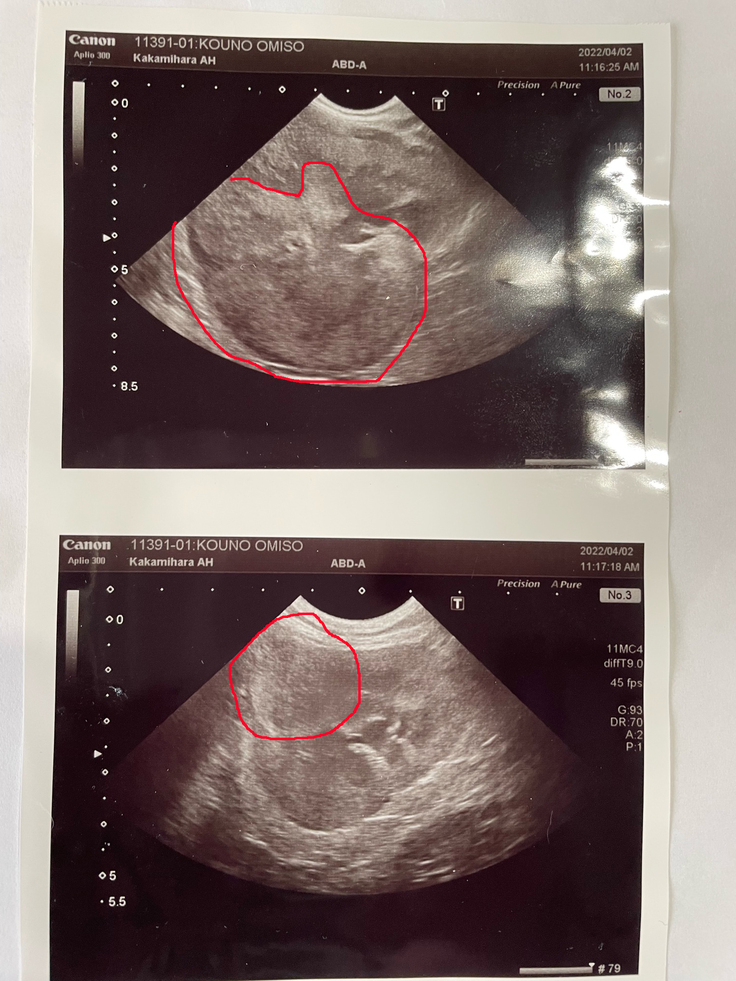 我が家の家族になってすくすくと育ち、ワクチン接種や健診、去勢手術も終え1年半、ある日突然、元気が無く食欲も減少し始めました。抱っこして体を触ったところ、しこりのような物があるのがわかりました。すぐに病院で精密検査して頂いたところ、2つの腎臓にひとつづつ腫瘍がある事がわかりました。