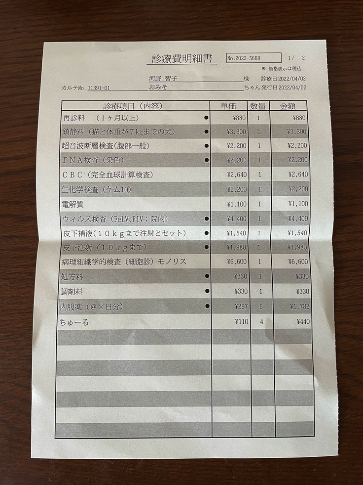 完治はしないが病状は良くなる可能性があるようなので、少しでも長く生きられる為にしてあげられる事は、抗がん剤治療しか無いと。おみそ自身も副作用が辛いかもしれませんが頑張ってほしいです。