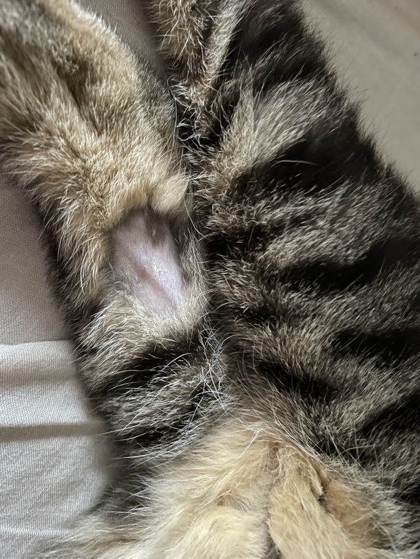 後足の付け根付近には、静脈への薬注入の為、剃毛の後が。頑張れおみそ!!