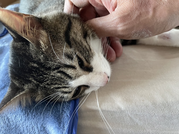 今日は、昨日に施術して頂いた食欲増進の点滴治療の効果か、いつもより沢山の餌を食べてくれました。水分もそれなりに摂ってくれたのて、一安心です。