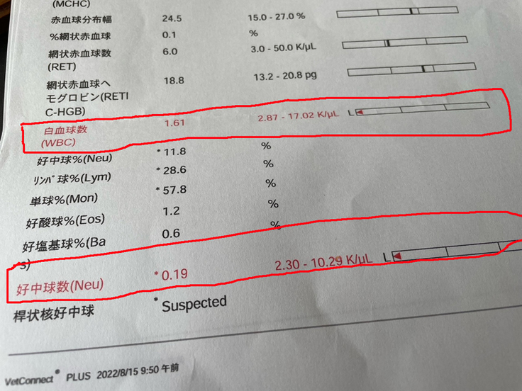 しかしながら、白血球数・好中球数の値が共に危険な値に。
