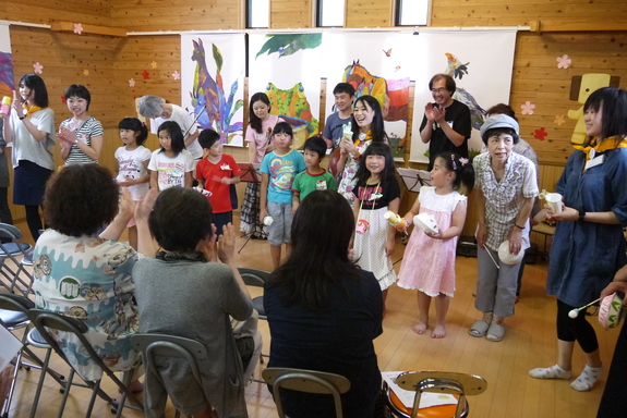 第二回目は2012年8月。今度はよりおもしろい企画にしようと、OMODOCが石巻の皆様と楽器作りのワークショップを行い、自分たちで作った楽器で日本フィルハーモニーさんと一緒に演奏会を開きました。