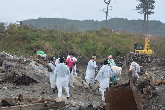 一人一人がスコップを手に、少しづつ瓦礫を崩し、積もった土を掘り進め、丁寧に手作業で泥を落としていく、まさに気の遠くなるような地道な方法です。